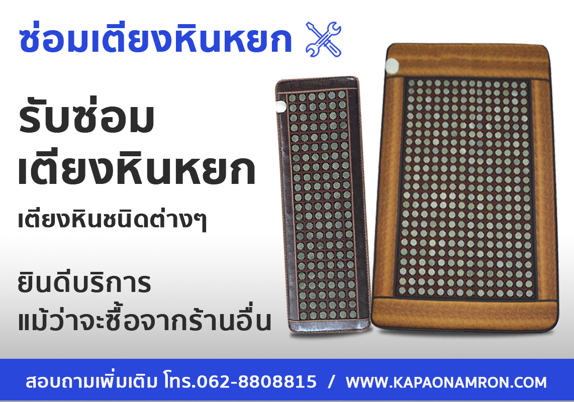 ตอนนี้ทาง www.kapaonamron.com ได้เปิดรับซ่อมเตียงหินหยก เตียงหินชนิดต่างๆแล้วนะคะ รวมถึงลูกค้าที่ซื้อจากร้านอื่นมาก็ตาม ทางร้านยินดีบริการค่ะ ค่าซ่อมไม่แพงอย่างแน่นอน ซ่อมแล้วเหมือนได้ใช้ของใหม่เลย เพราะจะใช้ไปได้อีกยาวนานเหมือนซื้อของใหม่เลยค่ะ สนใจสอบถามรายละเอียดเพิ่มเติมได้ที่ เบอร์ 062-8808815 หรือ แอดไลน์ ไอดี @kapaonamron (มี@ด้านหน้า) ได้ตลอดค่ะ
